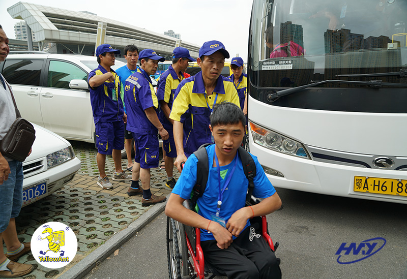 為保障此次殘疾人游泳錦標賽順利開展,黃螞蟻搬家貨運有限公司與市殘聯(lián)協(xié)力合作。在全國殘疾人游泳錦標賽開幕之前,就開始了相關培訓事宜,指導服務人員如何安全正確使用輪椅,如何在賽前賽后對運動員進行抱扶等貼心細致的人工服務。